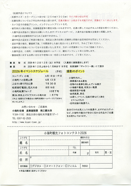 「小海町観光フォトコンテスト」応募要項