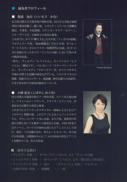 飯盛加奈さんのリサイタルです
